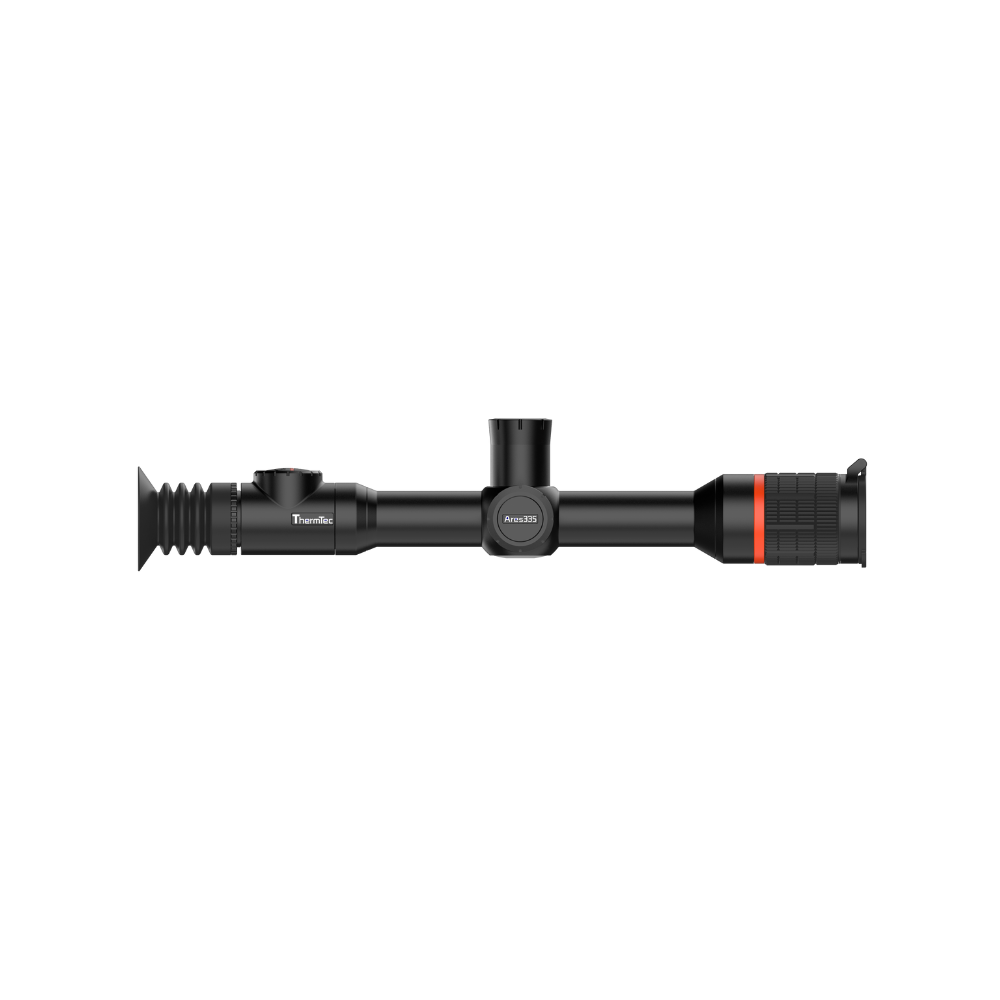 The ThermTec Ares 335 is a lightweight scope with many features. The 384×288 12 µm (NETD ≤35 mK) sensor displays a sharp image for the user. The 50 Hz frame rate and 1024×768 resolution OLED screen ensure a smooth, uninterrupted, and high-quality image. The device can detect a human-sized object (1.8×0.5 m) from a distance of up to 1800 meters. 6 interchangeable color palettes, 5 saveable ballistic profiles, picture-in-picture function, 7 different reticle options, interchangeable batteries, audio recording, manual/automatic sight adjustment capability, built-in AI algorithm rangefinder, and 16GB internal memory make the Ares 335 an ideal companion.