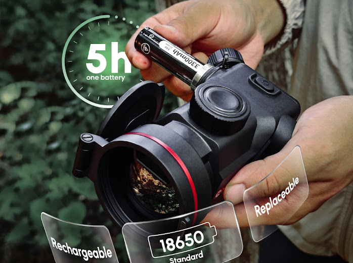 For user convenience, the TB 2.0 series uses a standard battery that’s easy to purchase, replace, and recharge. Each battery lasts up to 5 hours and is compatible with other Guide devices. The low-power design reduces power consumption, ensuring extended runtime for full hunting sessions.