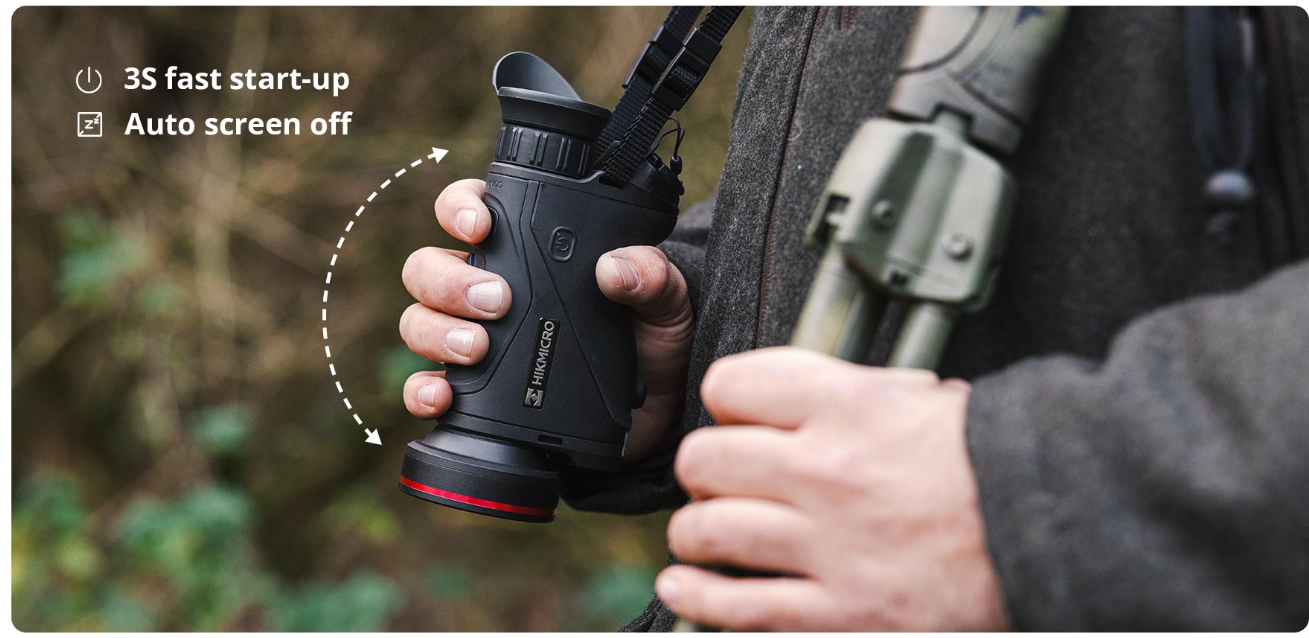 Hiilides näiteks jahiolukorras liigub kasutaja tihti pimedas, vältides valguse tõttu tähelepanu tõmbamist. Automaatse ekraani väljalülitamise funktsiooniga ei pea toitenuppu korduvalt vajutama — seade lülitub CONDOR LRF 2.0 asendi järgi ise sisse ja välja. See võimaldab hoida käed vabad.