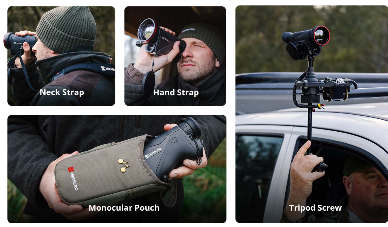 HIKMICRO CONDOR LRF 2.0 termomonoklit saab kanda mitmel moel: spetsiaalses kotis, randmerihmaga või kaelas. Tänu erinevatele kandmisvõimalustele saab iga kasutaja valida enda jaoks mugavaima ja usaldusväärseima viisi, hoides seadme alati käepärast ja valmis kasutamiseks.