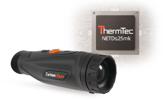 ThermTec Cyclops 650Pro on ergonomisen muotoilunsa ansiosta käteissä mukava. 640×512 12 µm (NETD 25 mk@300k) anturi näyttää käyttäjälle terävän kuvan, ja 50 Hz kuvafrekvenssi varmistaa sujuvan liikkuvuuden. Laite tunnistaa ihmisen kokoisen kohteen (1,8×0,5 m) jopa 2500 metrin etäisyydeltä. Laadukas OLED-näyttö, 6 vaihdettavaa väriprofiilia, tallennus- ja valokuvausmahdollisuus sekä jopa 12 tunnin kestävät tehokkaat akut tarjoavat erinomaisen käyttökokemuksen. Hinnan, laadun ja suorituskyvyn osalta se on paras kumppani metsästäjälle tai luontohavainnolle.