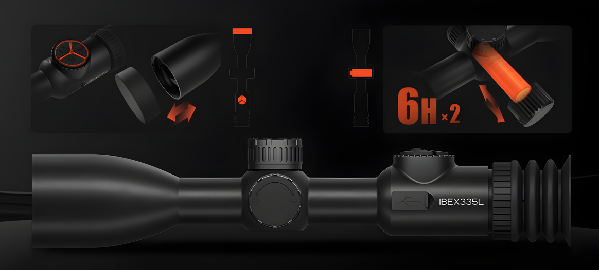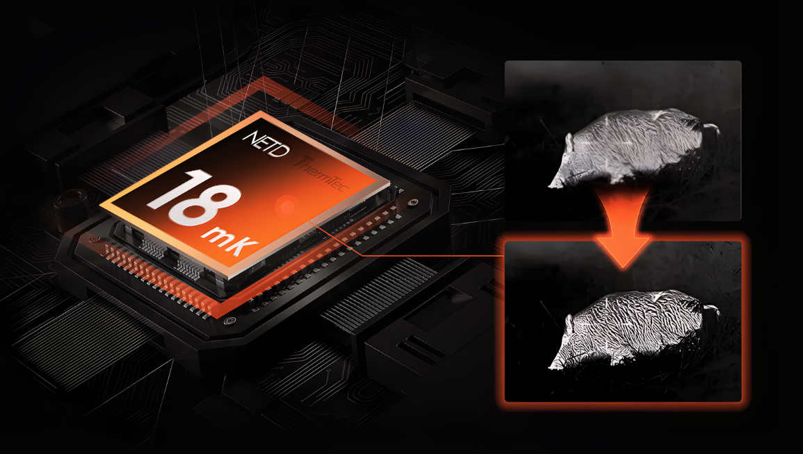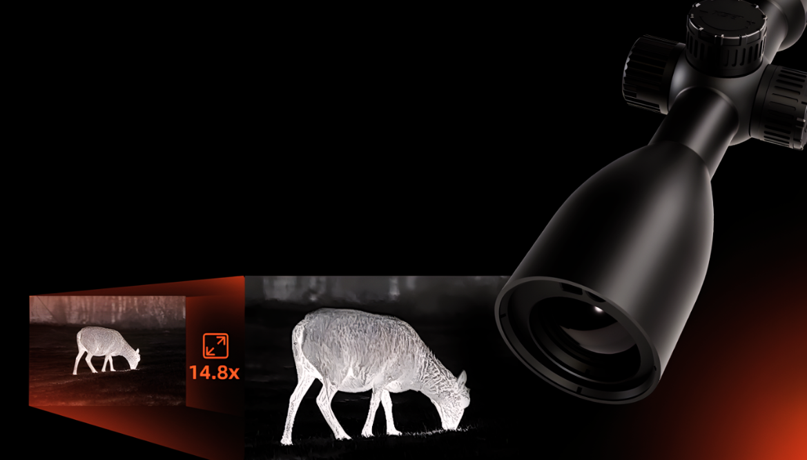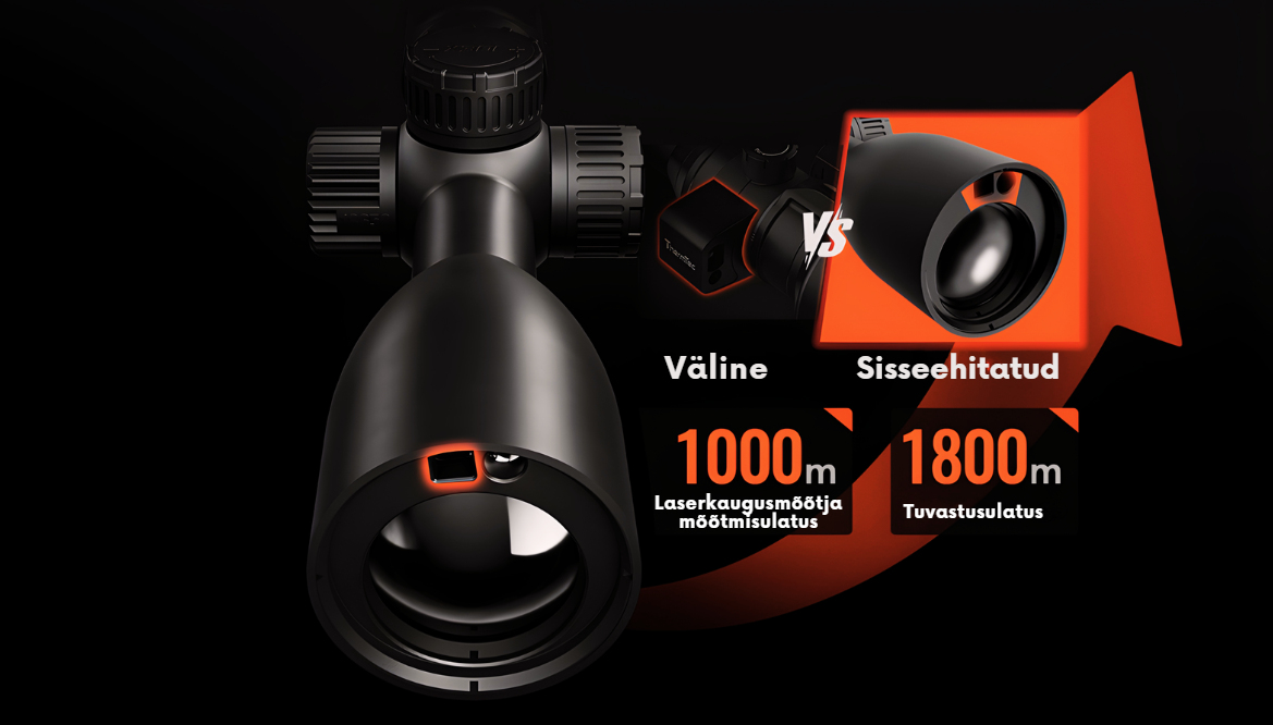 Kaugusmõõtja integreeritud ühtne ja voolujooneline konstruktsioon parandab nii visuaalset välimust kui ka struktuurset tugevust, säilitades samal ajal suurepärase termilise jõudluse. Thermtec Ibex pakub laserkaugusmõõtmise võimalust kuni 1000 meetrit.