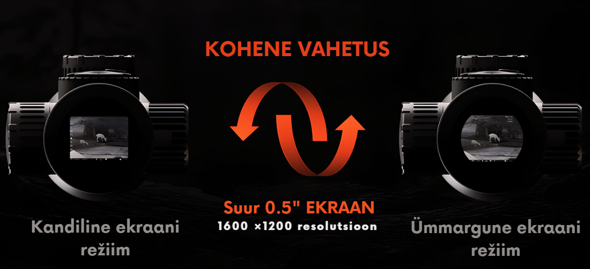 Kogege vabadust vahetada hetkega täisraamilise ruutvaate ja ümmarguse optilise vaate vahel. 0,5-tolline OLED-ekraan pakub teravat kujutist 1600 × 1200 resolutsiooniga. Kaks kuvarežiimi, mõlemad erakordselt detailsed, et pakkuda jahikogemust, mis tundub kohe tuttav.
