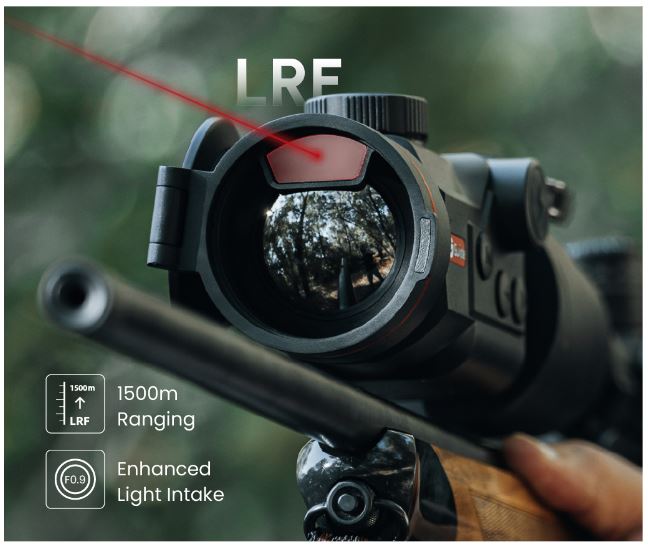Objektiivi sisse integreeritud laserkaugusmõõtja vähendab parallaksi viga. Samuti muudab see seadme suurust oluliselt väiksemaks, suurendades täpsust täppislaskmiseks või ballistiliste arvutuste tegemiseks mis tahes kaugusel. Laserkaugusmõõtja mõõtmisulatus kuni 1500 meetrit.