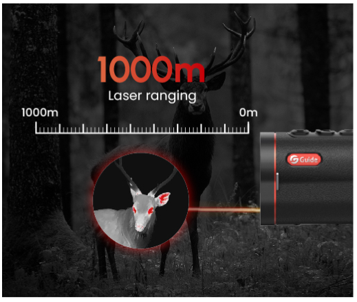 Seadmesse integreeritud laserkaugusmõõtja suurendab nii seadme kaasaskantavust kui ka praktilisust. Kaugusmõõtja maksimaalne mõõtmisulatus on kuni 1000 meetrit.