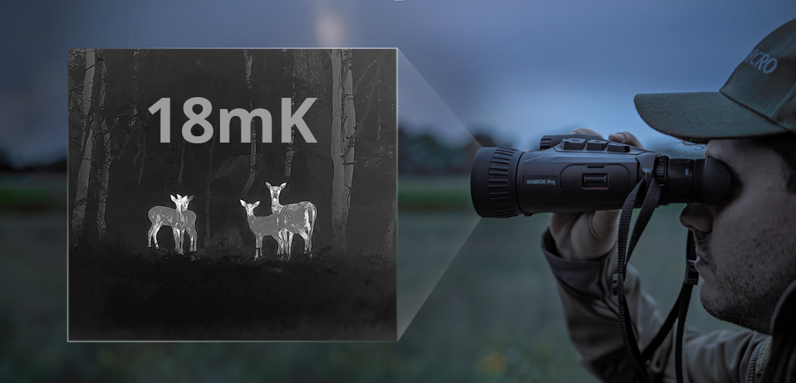 Mida kõrgem on termotundlikkus, seda lihtsam on objekte tuvastada ja eristada – olgu siis vihmas, udus või täielikus pimeduses. HABROK Pro NETD 18 mK väärtuse abil on loomade sugu ja käitumisomadused selgelt nähtavad ja kergesti eristatavad.