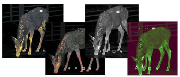 Meeldiva visuaalse termopildi kogemuse saamiseks on võimalik kasutada kuute erinevat värvivalikut vastavalt keskkonnale ning ilmastikutingimustele. See funktsioon lihtsustab kasutajal oma vaatevälja jälgimist, võimaldades optimeerida seadet nii konkreetse ülesande jaoks kui ka reageerida muutuvatele vaatlustingimustele.