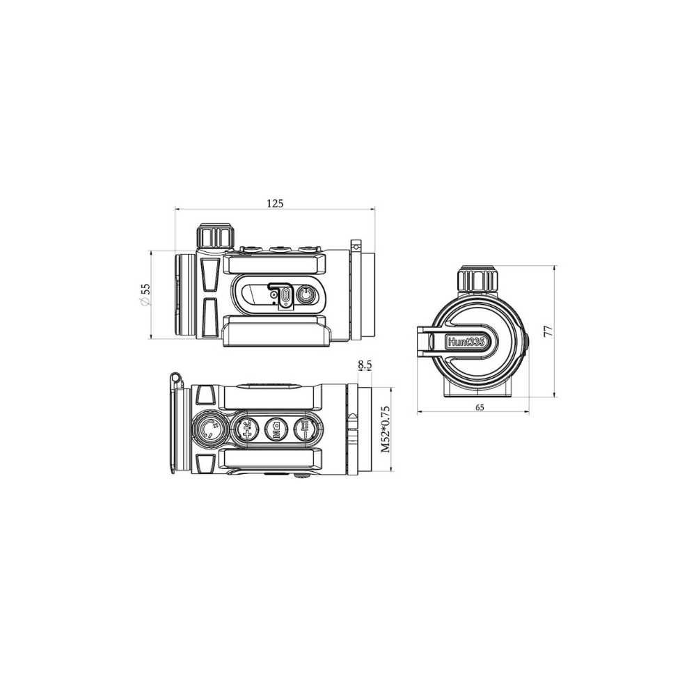 ThermTec Hunt 335 CLIP-ON sihik on ülimalt kompaktne ning kerge, kaaludes vaid 400 grammi. 384×288 12 µm (NETD ≤ 20 mK) sensor, 50 Hz kaadrisagedus, käsitsi teravustatav 35 mm objektiiv ja kõrge resolutsiooniga HD-OLED ekraan tagavad parima pildikvaliteedi. Hunt 335 suudab sisseehitatud AI kaugusmõõtja abil tuvastada inimese suuruse (1,8×0,5m) objekti kuni 1800 meetri kauguselt. Integreeritud aku tagab töö seitsmeks tunniks. Akut on võimalus paindlikult laadida USB-C kaabli abil autos või mistahes akupanga kaudu. Uuenduslik teravustamisnupp ning supermugav kaugjuhtimispult „Smart Ring“ teevad seadme kasutamise üllimalt nauditavaks. Hunt 335 on 64 Gb suurune sisemälu, kuhu on võimalik salvestada tuhandeid pilte ja tundide pikkuseid videosi. Tänu hinna ja kvaliteedi suhtele on Hunt 335 ideaalseim kaaslane kõigile, kes otsivad kuldset keskteed.