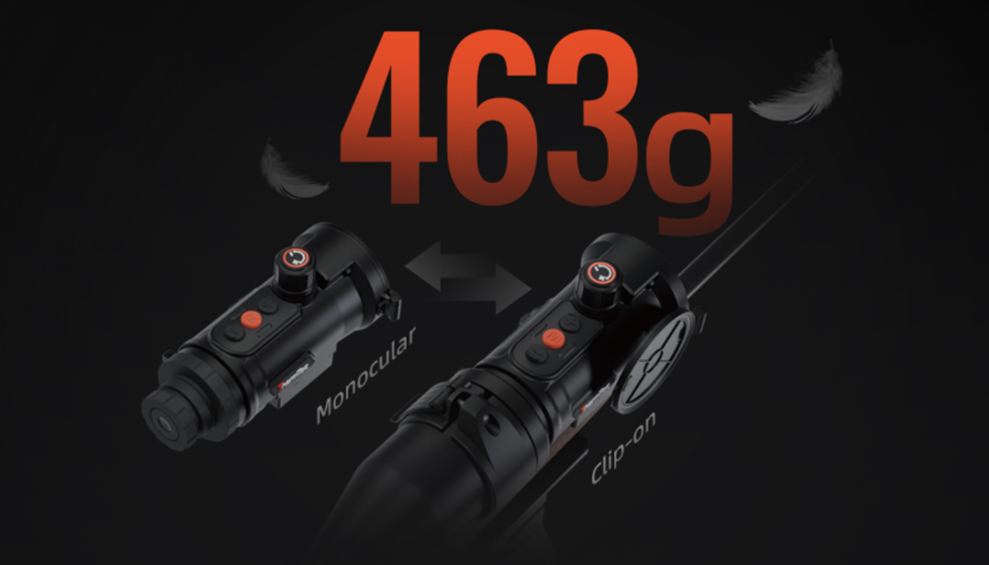 Hunt LRF 2-in-1 clip-on ja monokkel võimaldab kiiret üleminekut laskmise ja vaatlemise vahel. Kaaludes vaid 463 g, on see oma klassi kõige kergem seade, tagades lihtsa kaasaskandmise igal maastikul.