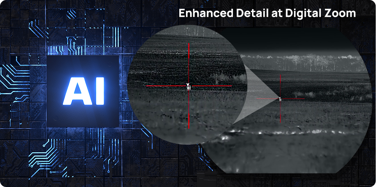 Digitaalne suurendus võib pildidetailid hägustada, kuid LEAP L12R teravustab neid tehisintellektil põhinevate algoritmide abil. RET-tehnoloogia taastab suurendamisel kaduma minevad detailid, hoides kujutise sujuva ja selgena. Dünaamiline stseeni kohandamine tasakaalustab heledaid ja tumedaid alasid, säilitades lokaalsed detailid, ning täiustatud servade esiletõstmine parandab kontuuride eristust, muutes sihtmärgi selgemini eristatavaks.
