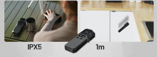 NITECORE EMR10 on IPX5 kaitseklassiga, mis tagab usaldusväärse kaitse vee eest. IPX5 tähendab, et seade on vastupidav veepritsmetele mis tahes suunast, nii et saate EMR10 kasutada ka vihmastes või niisketes tingimustes. See tagab seadme välistingimustes kasutamisel täiendava töökindluse ja ohutuse, tagades selle laitmatu töö sõltumata ilmastikutingimustest. Vastupidav löökidele 1 meetri kõrguselt. See tähendab, et seade on loodud vastu pidama juhuslikele kukkumistele ja põrutustele, säilitades samal ajal oma funktsionaalsuse. See funktsioon on eriti kasulik reisimisel või aktiivse tegevusega looduses, kus juhuslikud põrutused on tavalisemad.