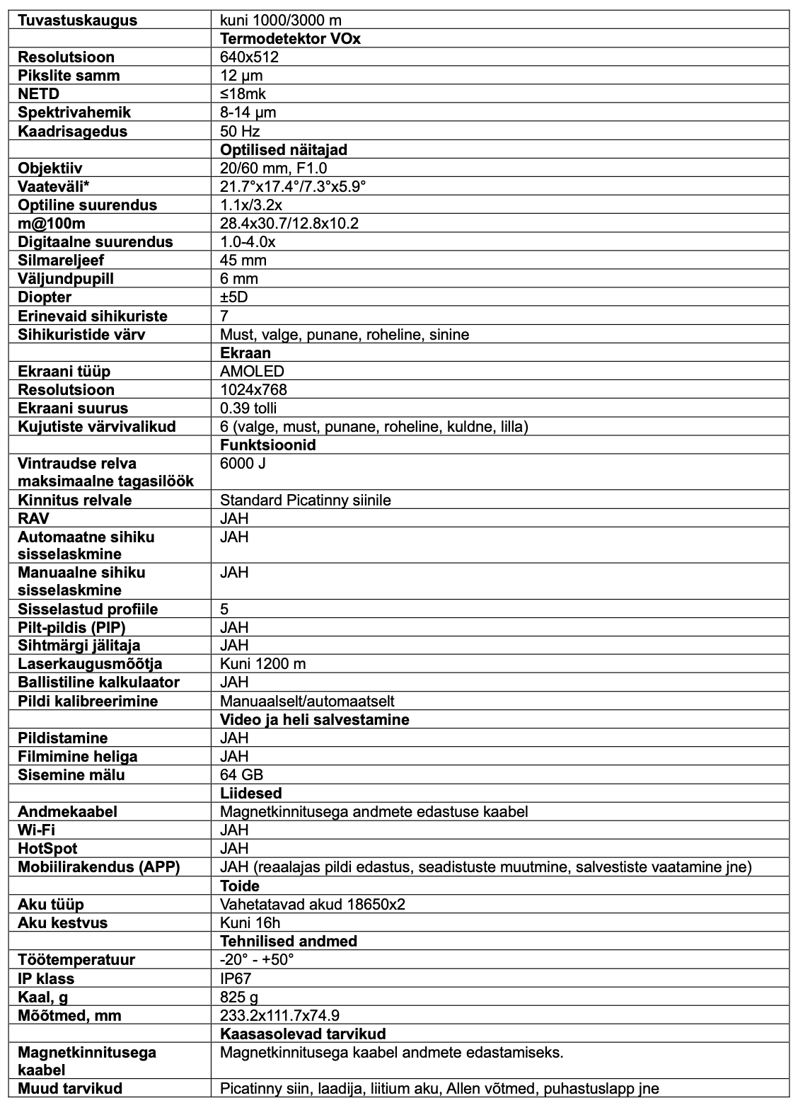 ThermTec Vidar 660 LRF versioon 2.0 on kompaktne ning täiustatud funktsioonidega. 640×512 12 µm (NETD ≤20 mk) sensor kuvab kasutajale ülimalt selge ning kvaliteetse pildi. 50 Hz kaadrisagedus ja 1024×768 resolutsiooniga AMOLED ekraan tagavad sujuva ning katkestusteta pildiedastuse. Inimese suuruse objekti (1,8×0,5m) tuvastab seade kuni 1000/3000 meetri kauguselt, olenevalt sellest, milline objektiivi suurus on valitud (20mm/60mm). Thermtec Vidar 660 LRF 2.0 omab topelt objektiivi süsteemi (DUAL FOV 20mm/60mm), mis võimaldab vahetada erinevate vaateväljade vahel. Suurendatud mõõtmisulatusega laserkagusumõõtja on võimeline mõõtma vahemaad kuni 1200 meetri kaugusel asuvate objektideni. 6 vahetatavat värvipaletti, 5 salvestatavat ballistilist profiili, pilt-pildis funktsioon, 7 erinevat sihikuristi valikut, vahetatavad akud, heliga salvestamine, manuaalne/automaatne sihiku sisselaskmise võimalus, 64GB sisemälu teevad Thermtec Vidar 660 LRF 2.0-st ideaalse kaaslase.